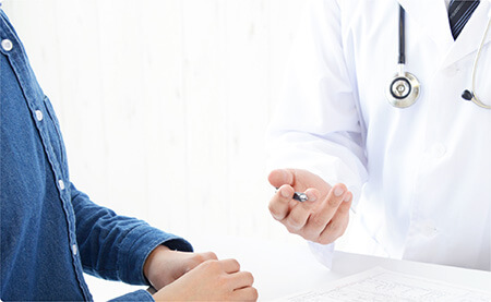 - 診察は健康状態や服用しているお薬の確認をする問診だけです。 触診もズボンを脱ぐこともありません。